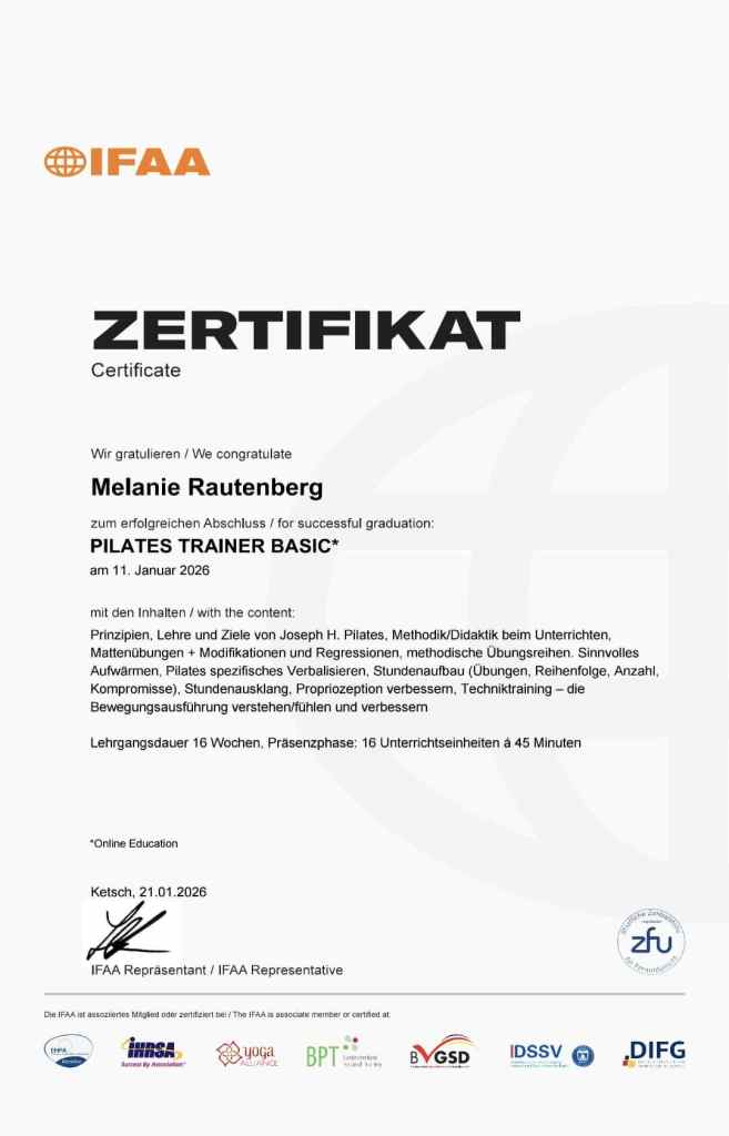 Ich heiße Melanie Rautenberg, bin hauptberuflich Gesundheits- und Krankenpflegerin. Nebenberuflich bin ich als .zertifizierte Vinyasa Power Yogalehrerin (500h) , BALLance Master Trainerin , Groupfitness B – Workout Trainerin und Pilates Trainerin tätig,